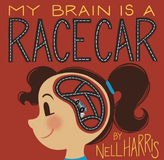 My Brain is a Race Car by Nell Harris creatively depicts how minds that have ADHD process thoughts and ideas, or pick up information along their journey. Harris makes the comparison of brains to cars in a way that is easy to understand and connect to. The pictures in this book creatively demonstrate the plethora of thoughts in the brain like a race car.